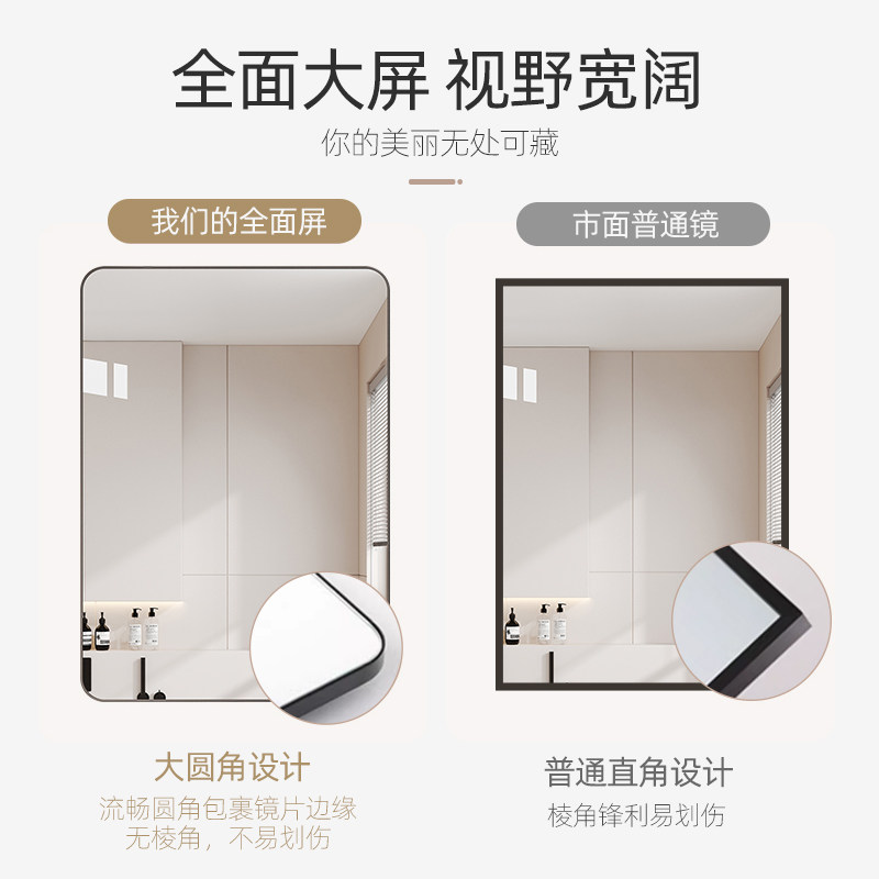 浴室镜子贴墙自粘卫生间厕所洗面台洗手盆免打孔挂墙式 防水玻璃镜
