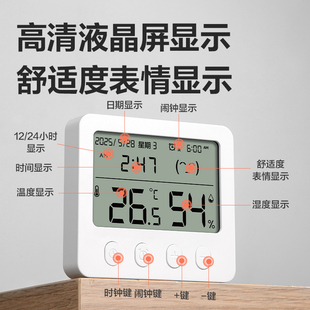 精准数显温度计桌面电子温湿度计闹钟母婴家用壁挂温湿度室内室外