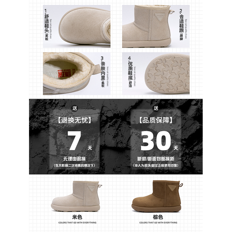 加绒加厚保暖东北大棉鞋 冬季 防滑棉靴 2025新款 环球中筒雪地靴女款