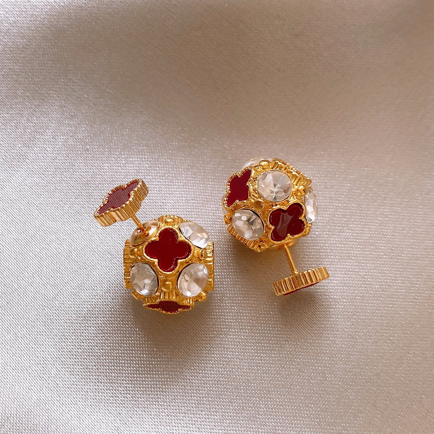 红色超闪镶钻耳骨钉女2022新款 潮双头螺丝拧扣耳钉高级感耳环耳饰