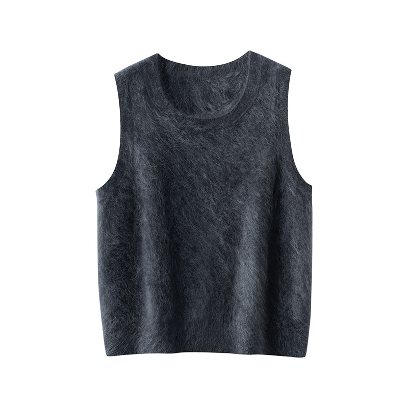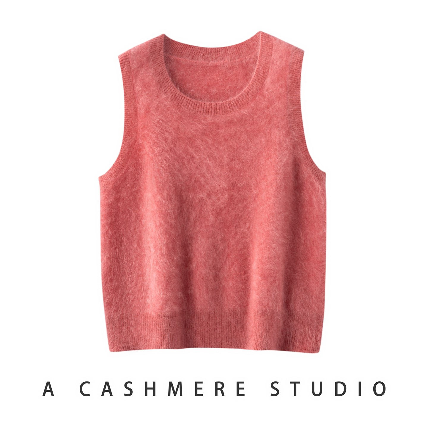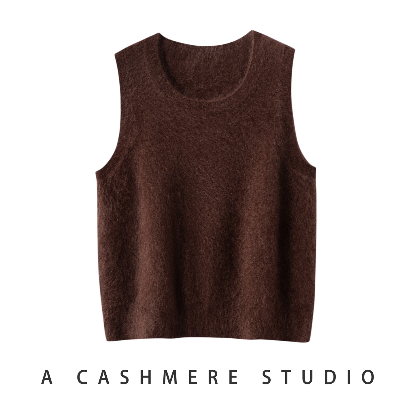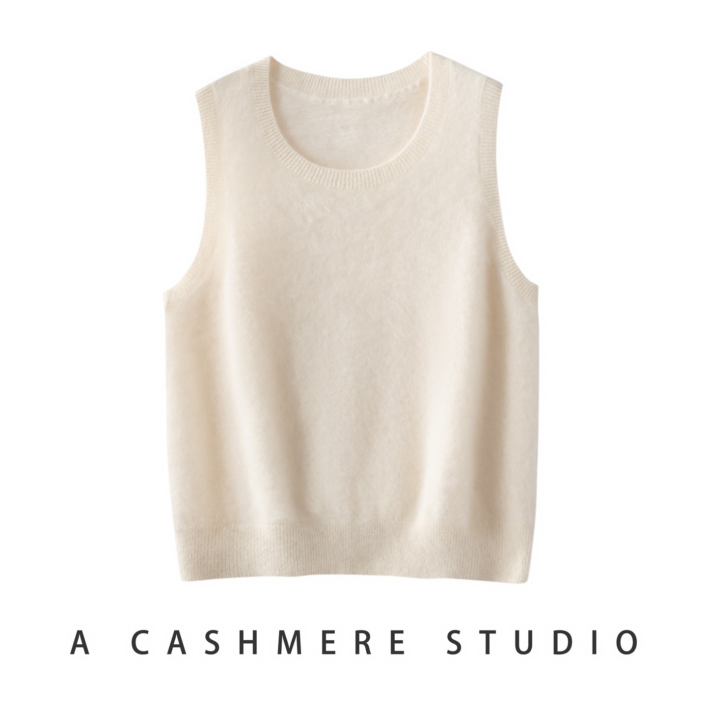 宽松内搭保暖上衣 针织打底衫 25秋冬新款 100%山羊绒背心女圆领无袖