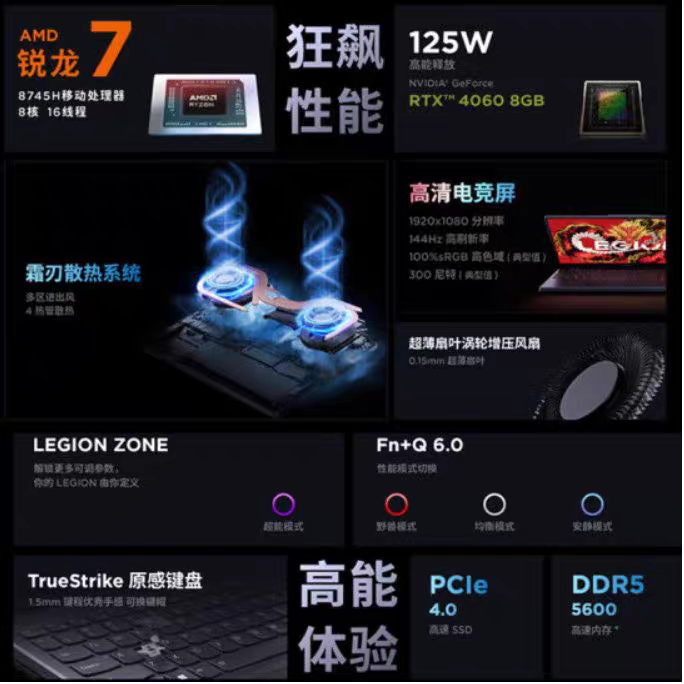 锐龙24款 R7000 8745 15.6英寸笔记本电脑 Lenovo RTX4060 联想
