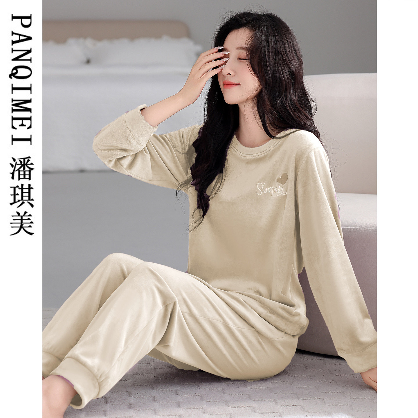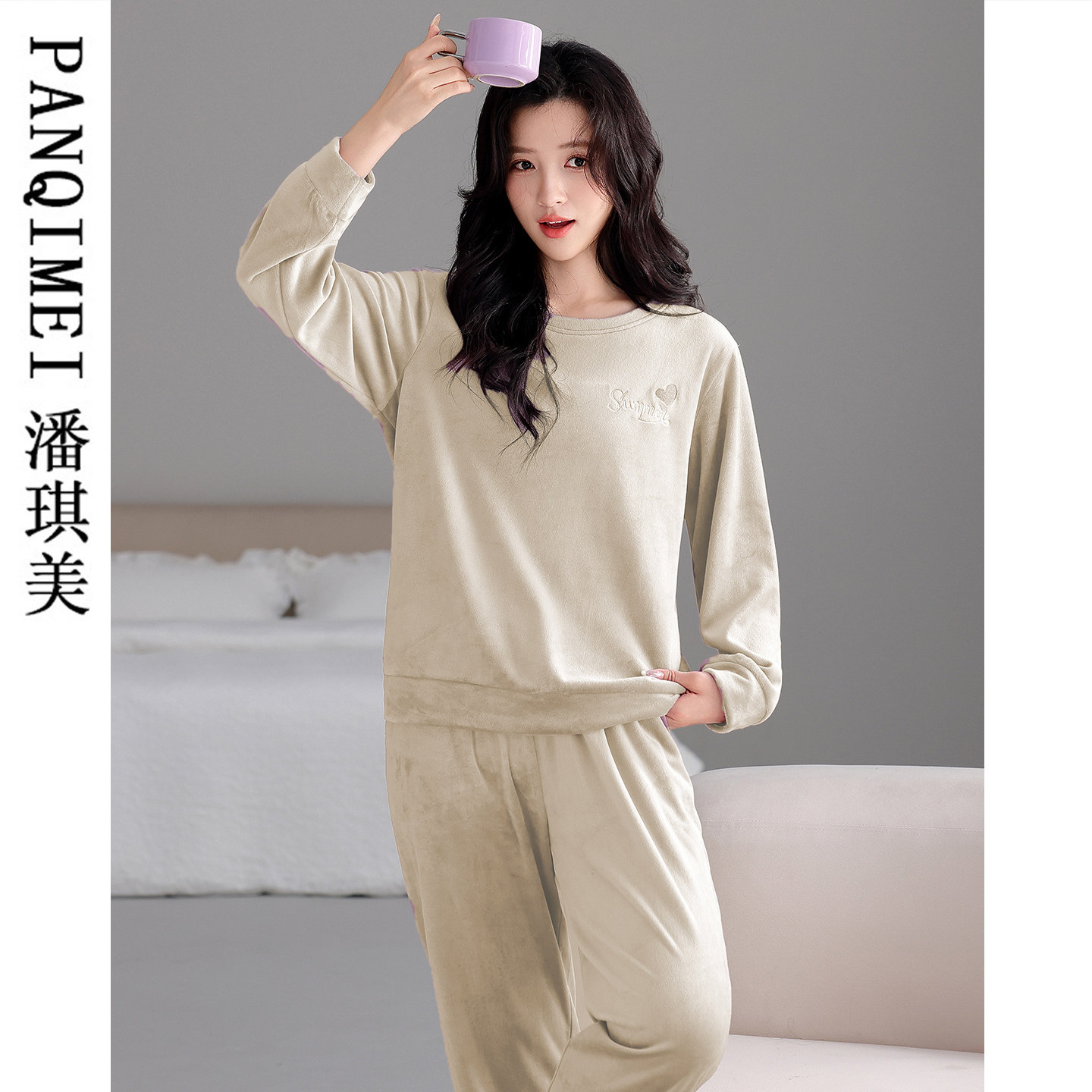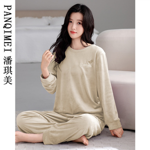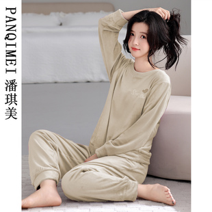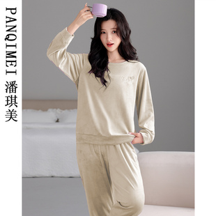 春秋珊瑚绒家居服 时尚 海岛绒睡衣女秋冬季 加绒薄绒可外穿套头新款