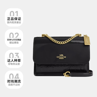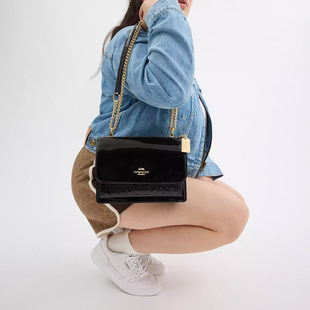 蔻驰女士风琴包气质漆皮链条包简约百搭单肩斜挎包 COACH 自营