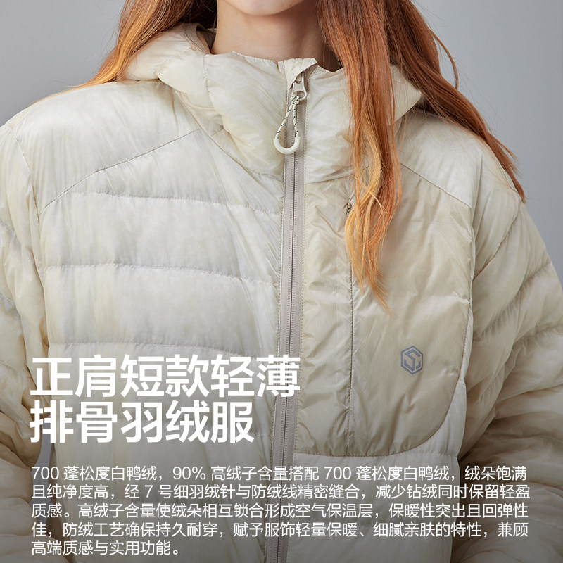 GuukaTech户外正肩短款 轻盈防泼水90绒保暖外套 连帽排骨羽绒服女