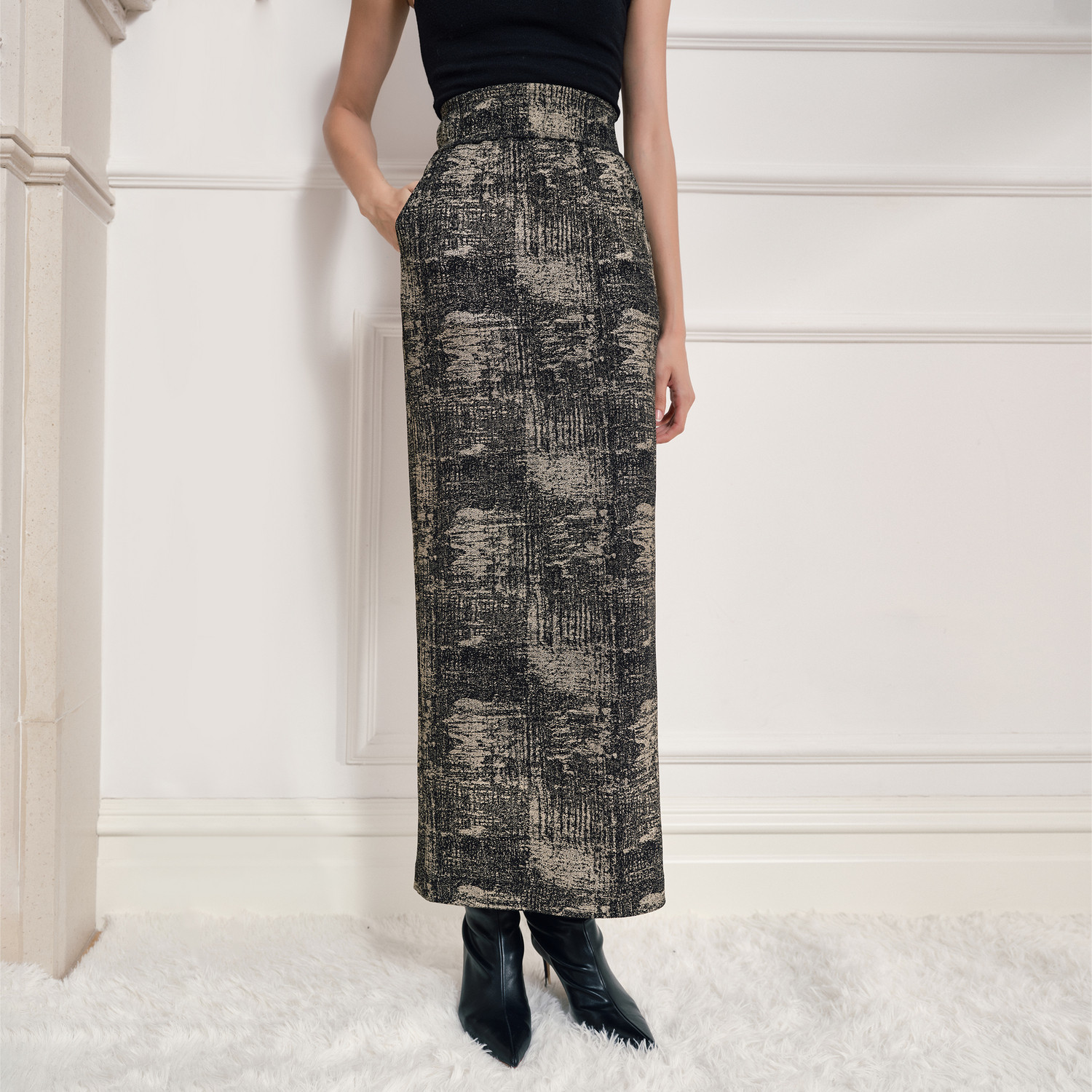 高腰金属感半身裙26年春新款 中式 包臀一步长裙 安纳西迷踪 TU女装