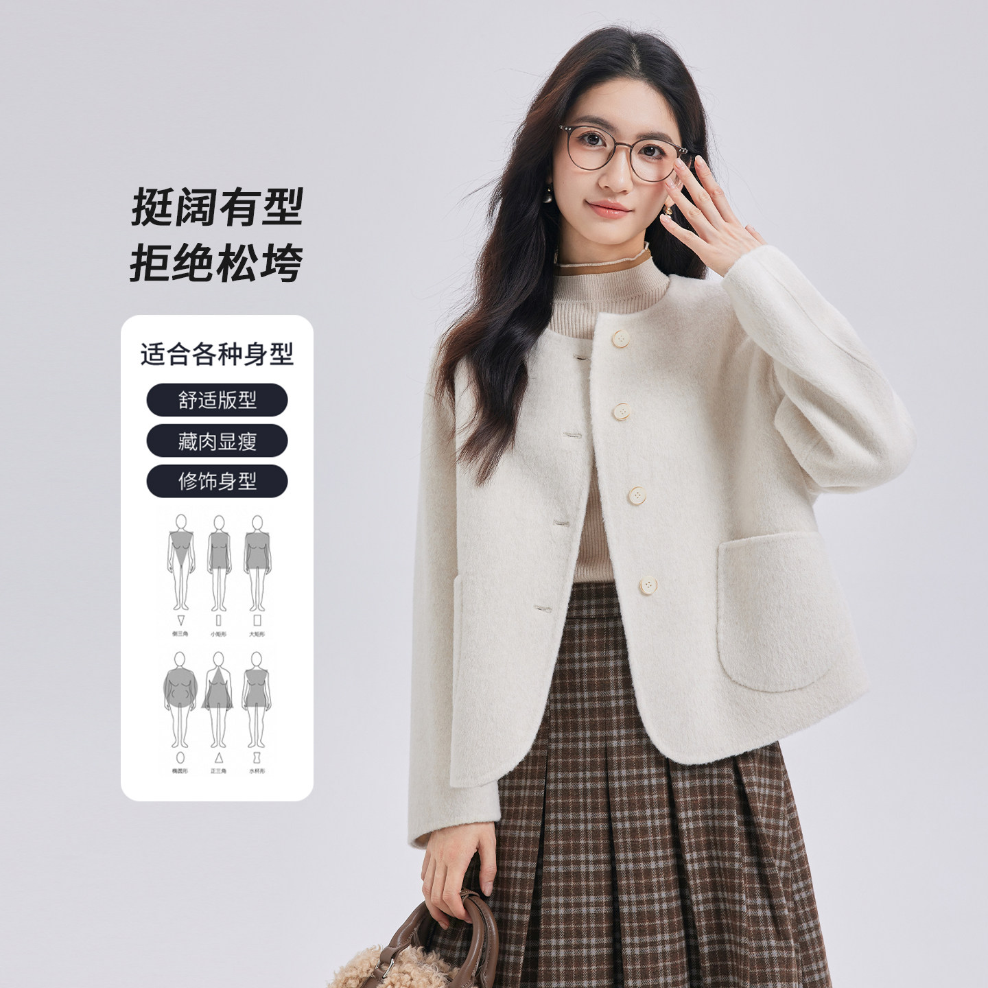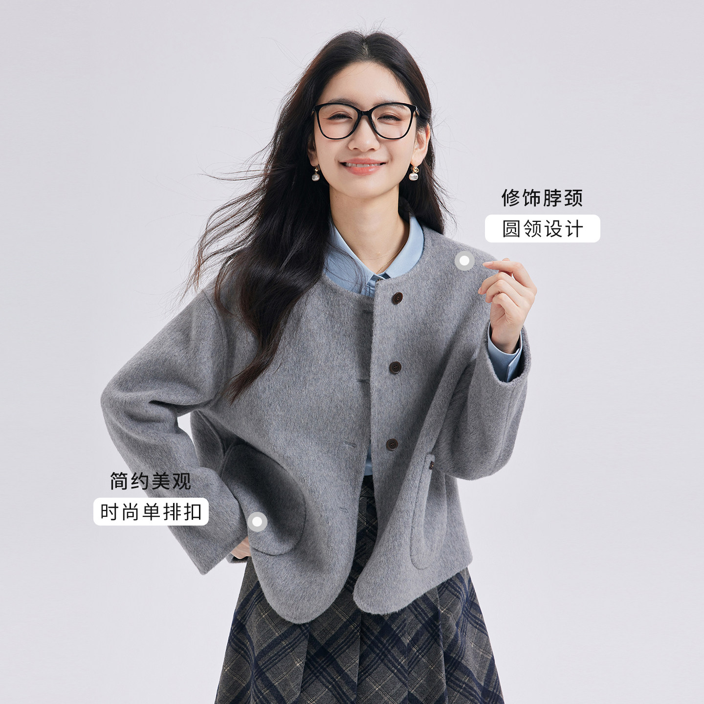 图曼朵蓝色双面呢短款 毛呢外套羊毛短外套 大衣女小个子2025新款