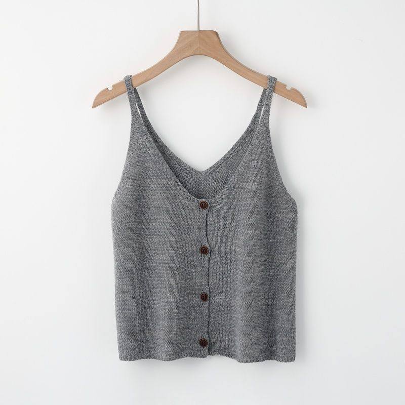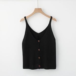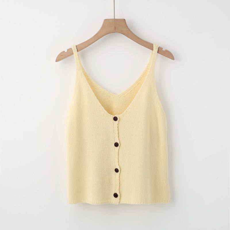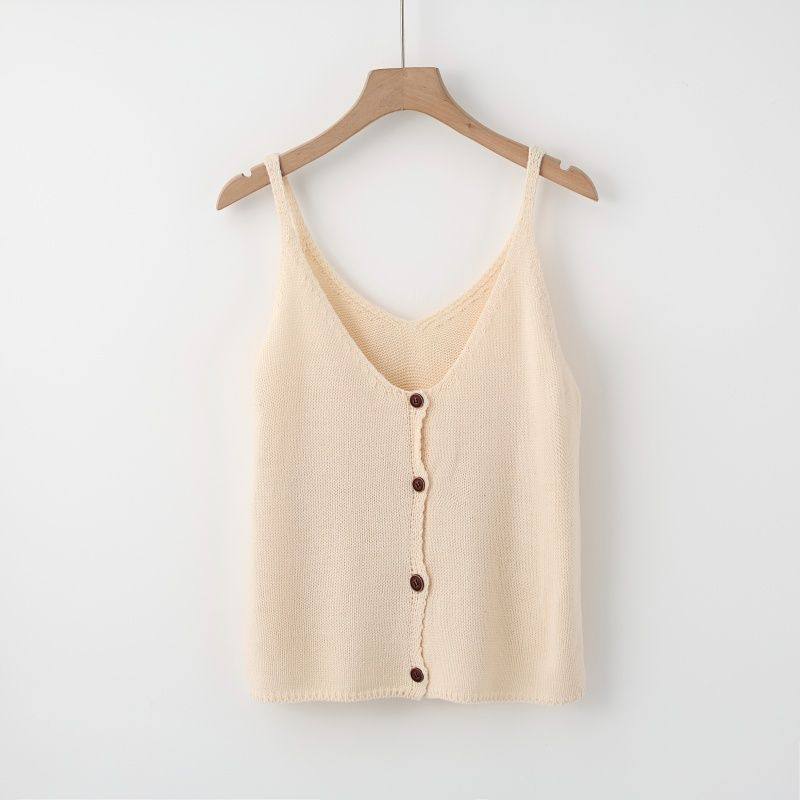 小众单排扣背心开衫 韩系设计感针织外搭V领吊带背心女春季 新款