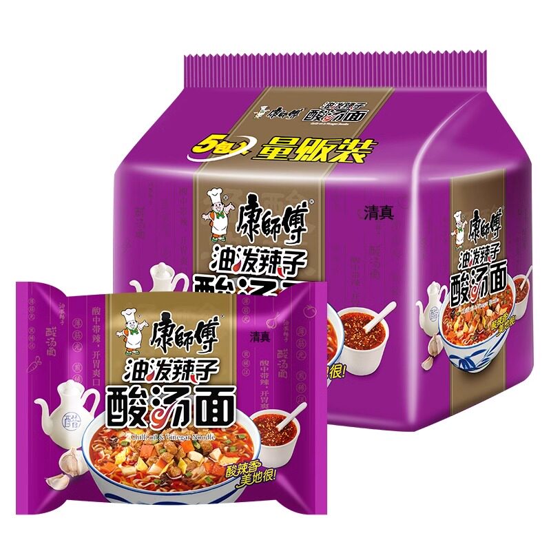 清真师傅康油泼辣子酸汤面五连包泡面牛肉面方便面袋装 回民食品