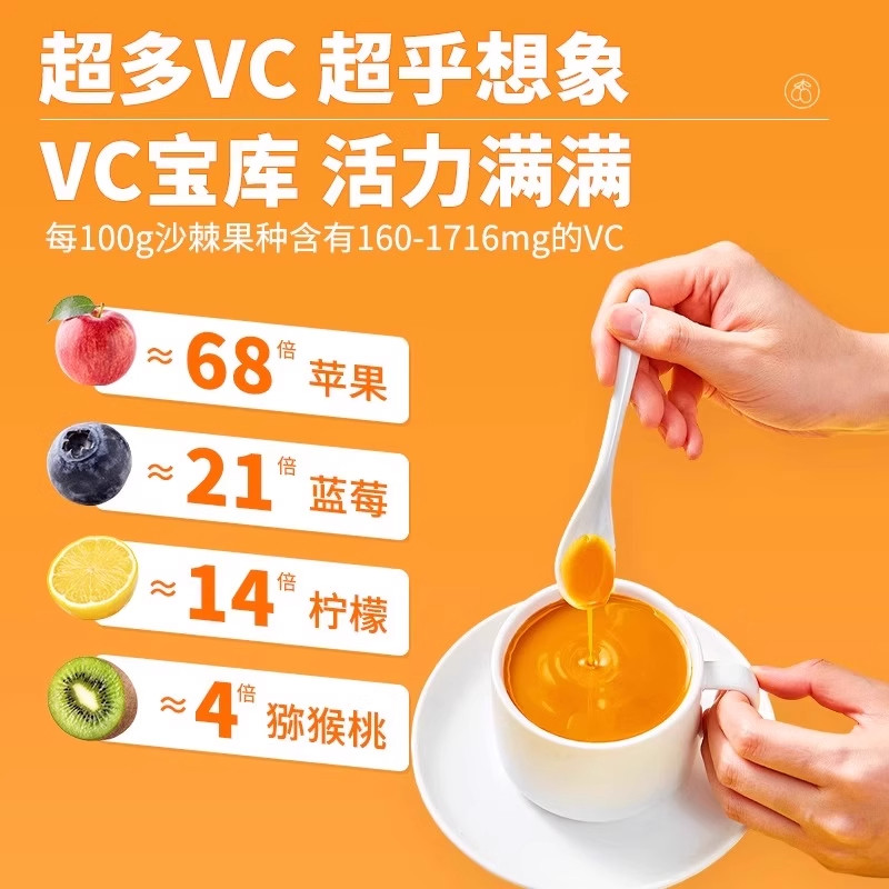 沙棘原浆官方优选VC鲜果植物纯天然生榨沙棘果汁饮料无添加正品