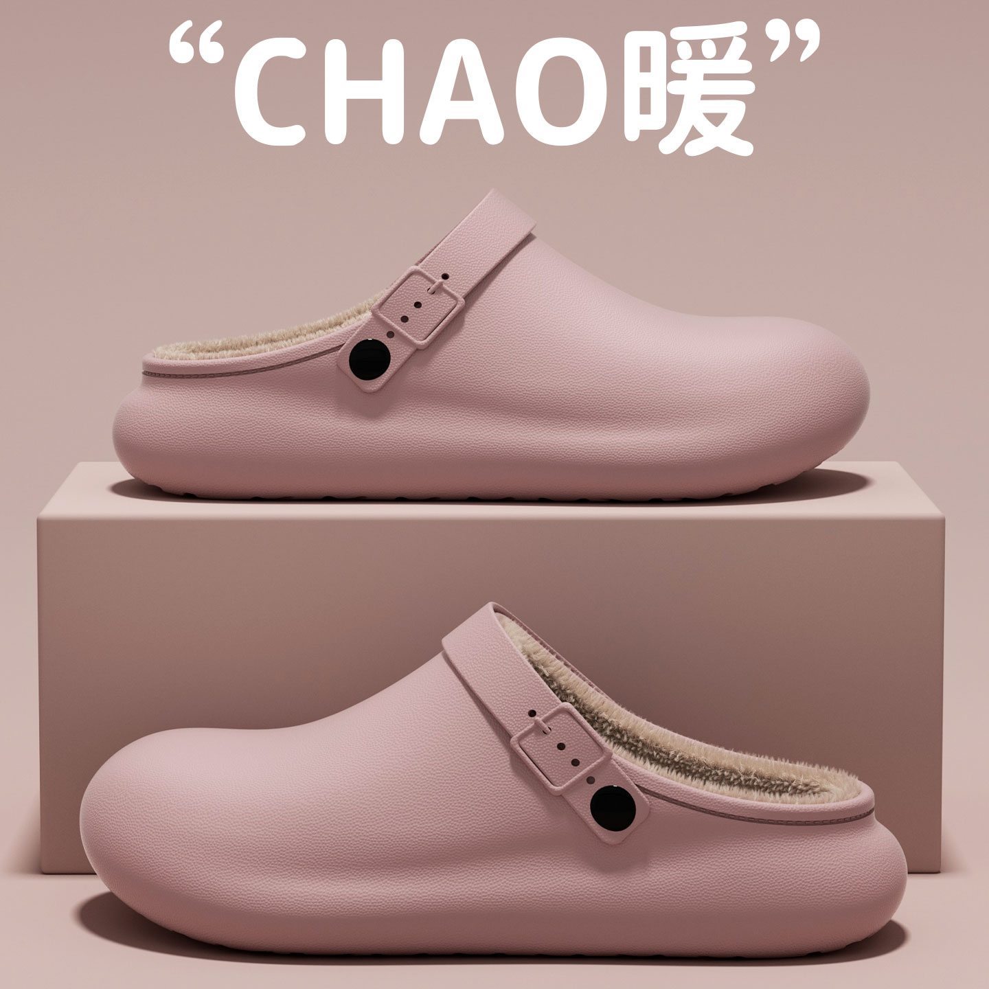 女踩屎感防滑加绒保暖拖鞋 人本冬季 厚底可外穿拖鞋 包头棉拖鞋 男士