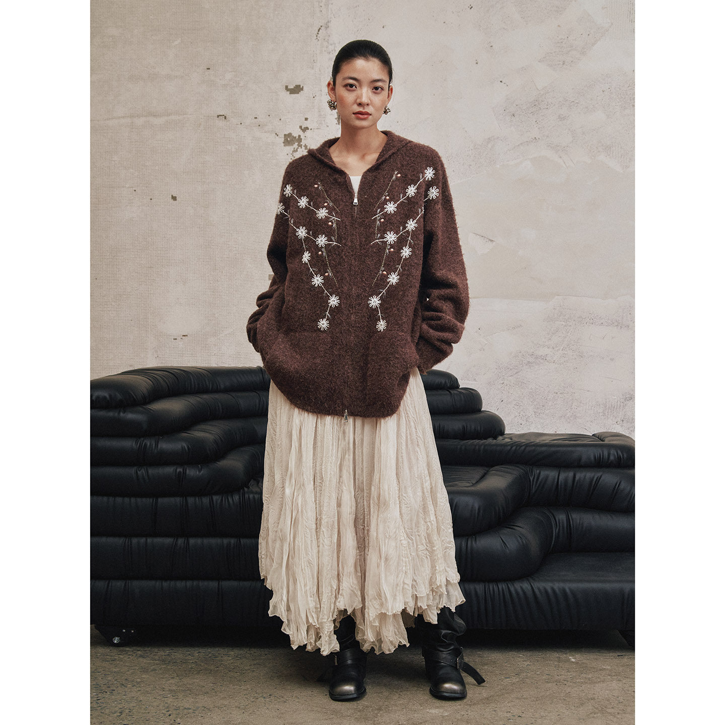 徐大脸吖定制 秋冬慵懒松弛感毛衣女 山羊绒拉毛绵羊毛蓬松针织衫