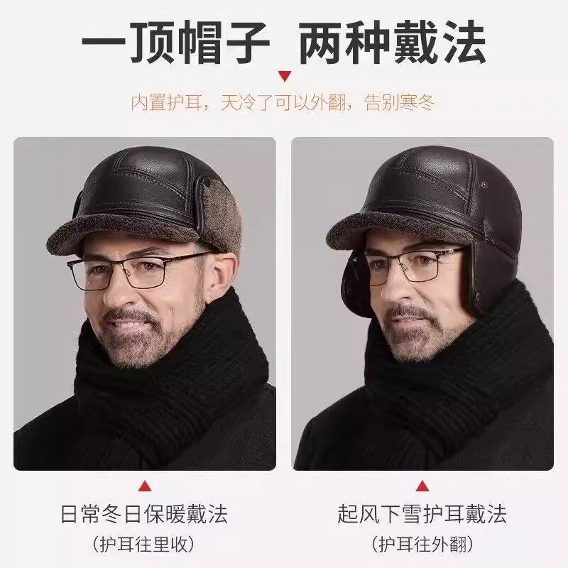 帽子男士 爸爸保暖中老年人秋冬雷锋帽老人爷爷冬天护耳鸭舌帽 冬季