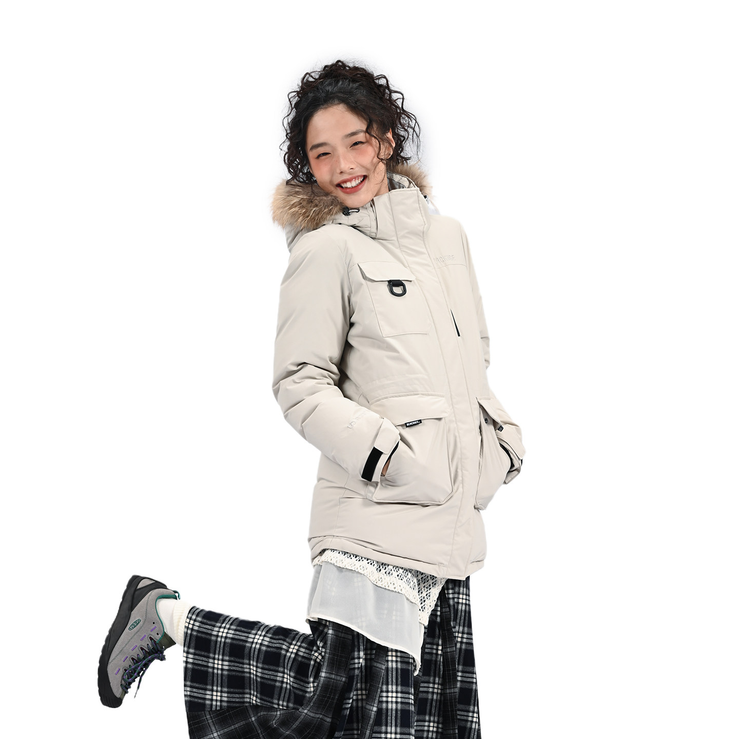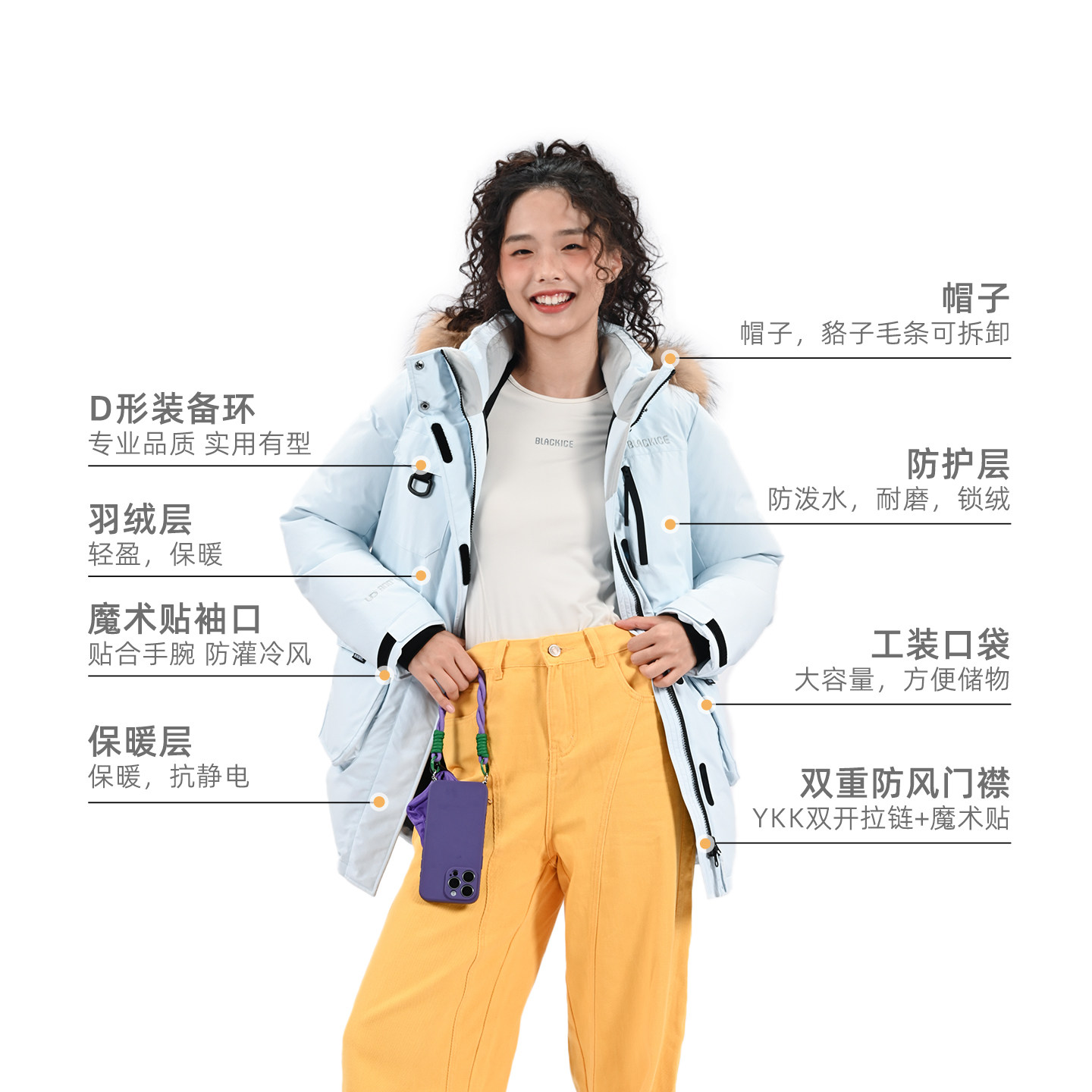 胖mm冬季 女一体无胆白鸭绒羽绒冲锋衣 都市户外羽绒服木子理想大码