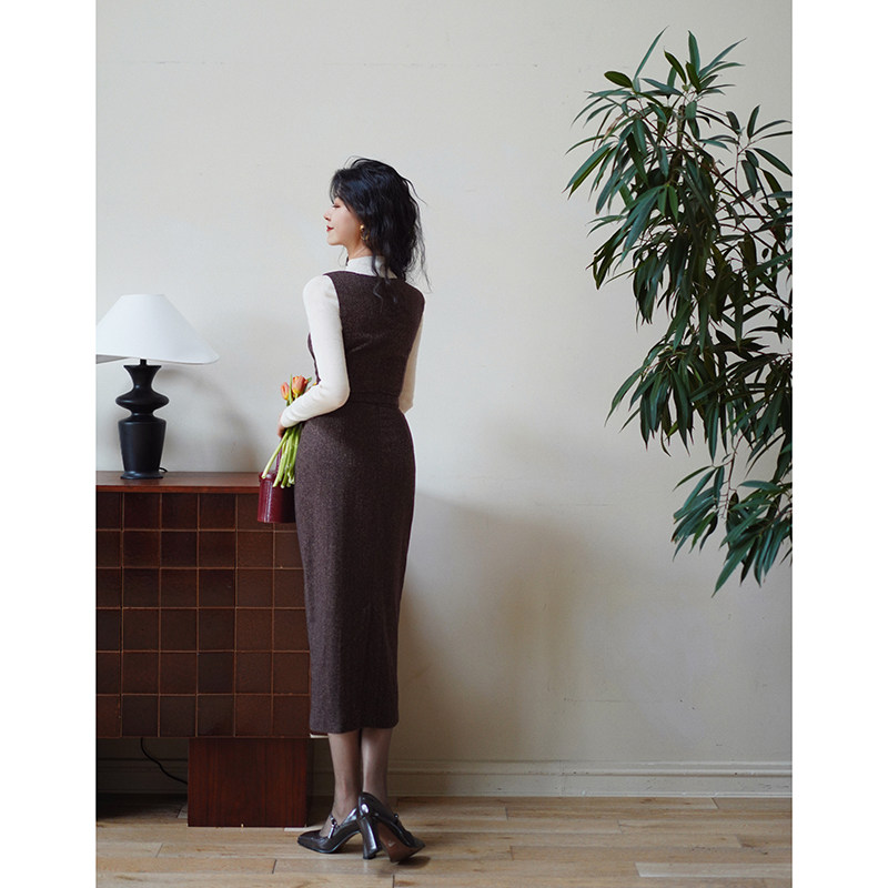 柒院家大码 高级感毛呢背心连衣裙2025秋冬宽松遮肉减龄中长裙 女装