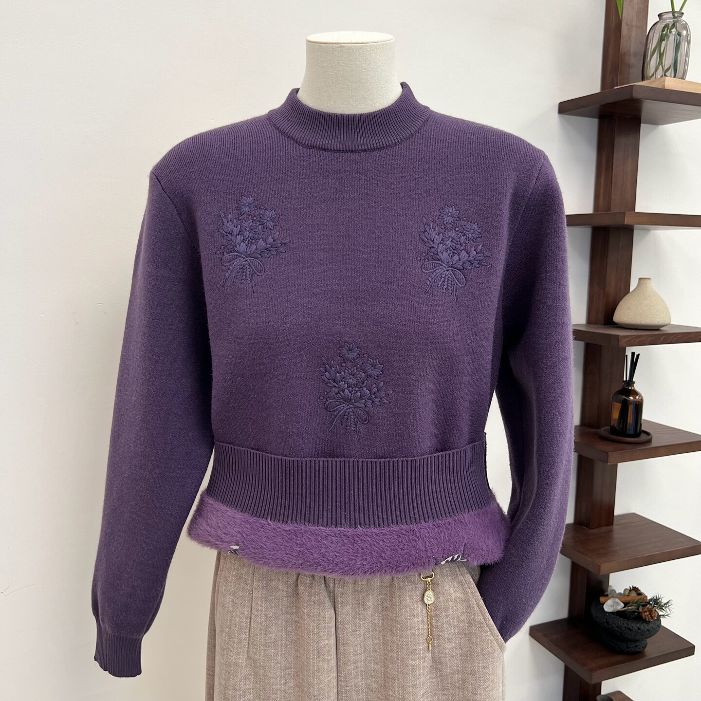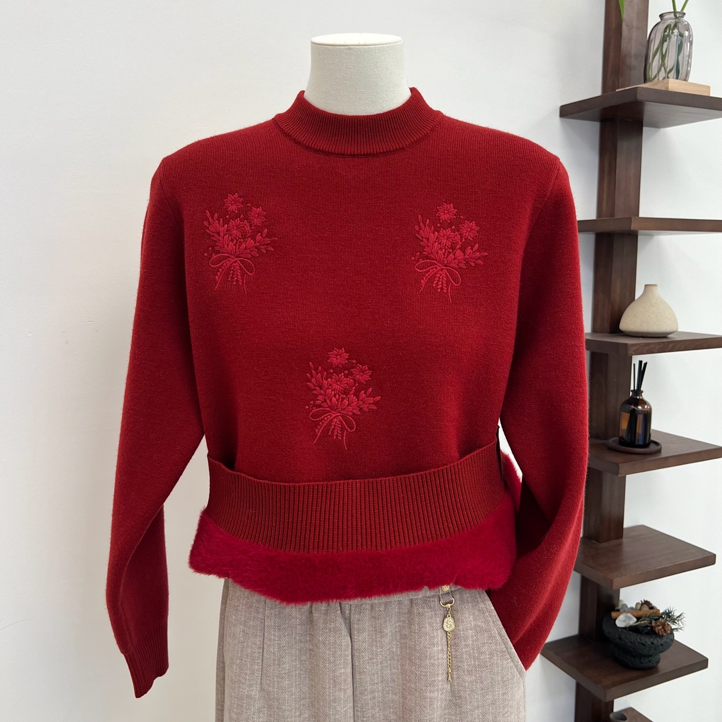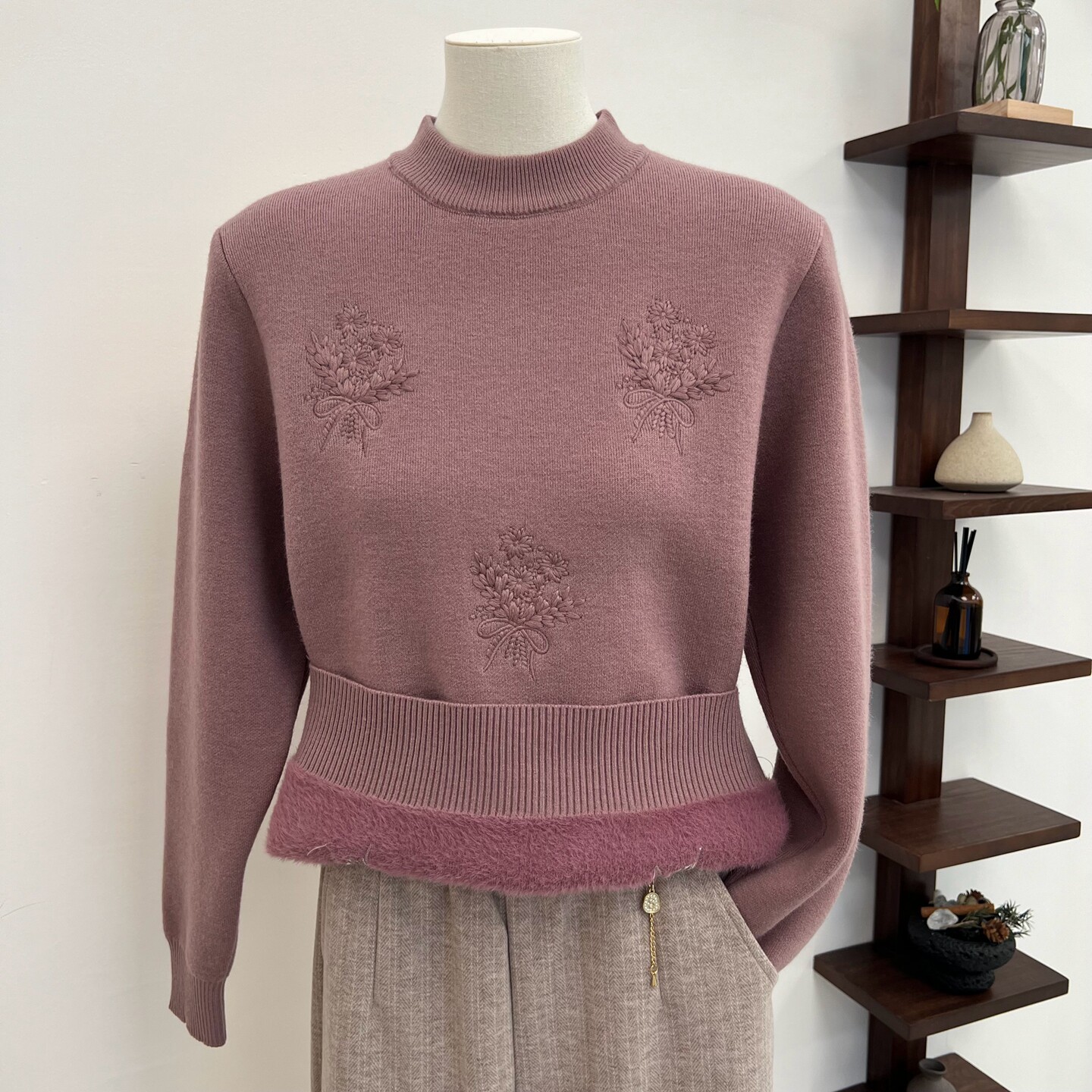 一体绒中老年半高领上衣 保暖针织毛衣加绒加厚宽松大码 冬季 妈妈装