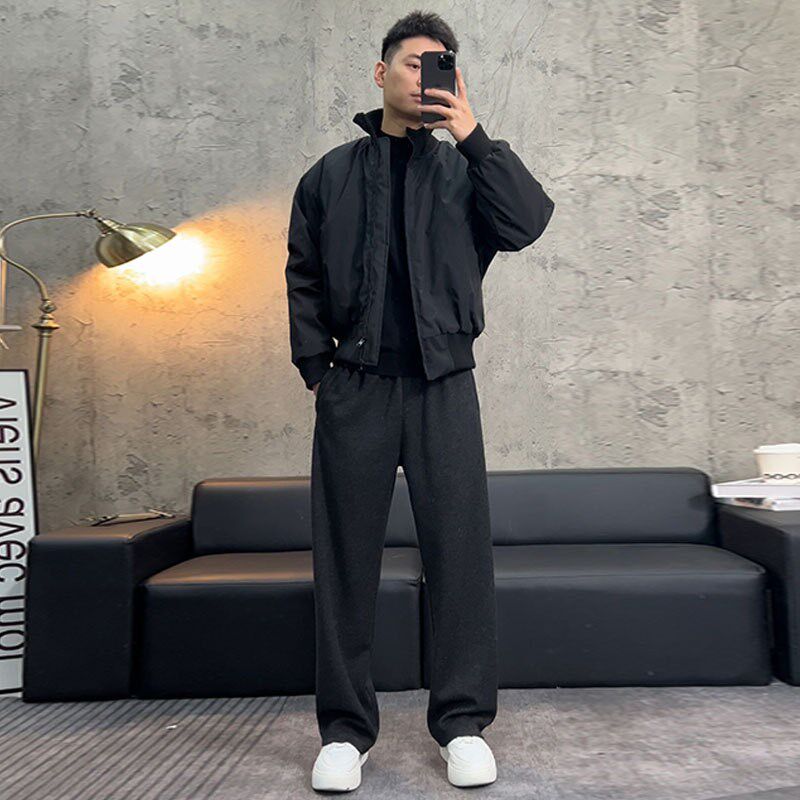 直筒休闲长裤 人字纹星空毛呢西裤 糯米宽松垂感阔腿裤 春秋款 男 男款