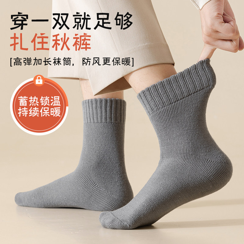 羊毛袜子男秋冬加绒东北零下40度加厚防寒保暖中筒袜羊绒睡眠长袜