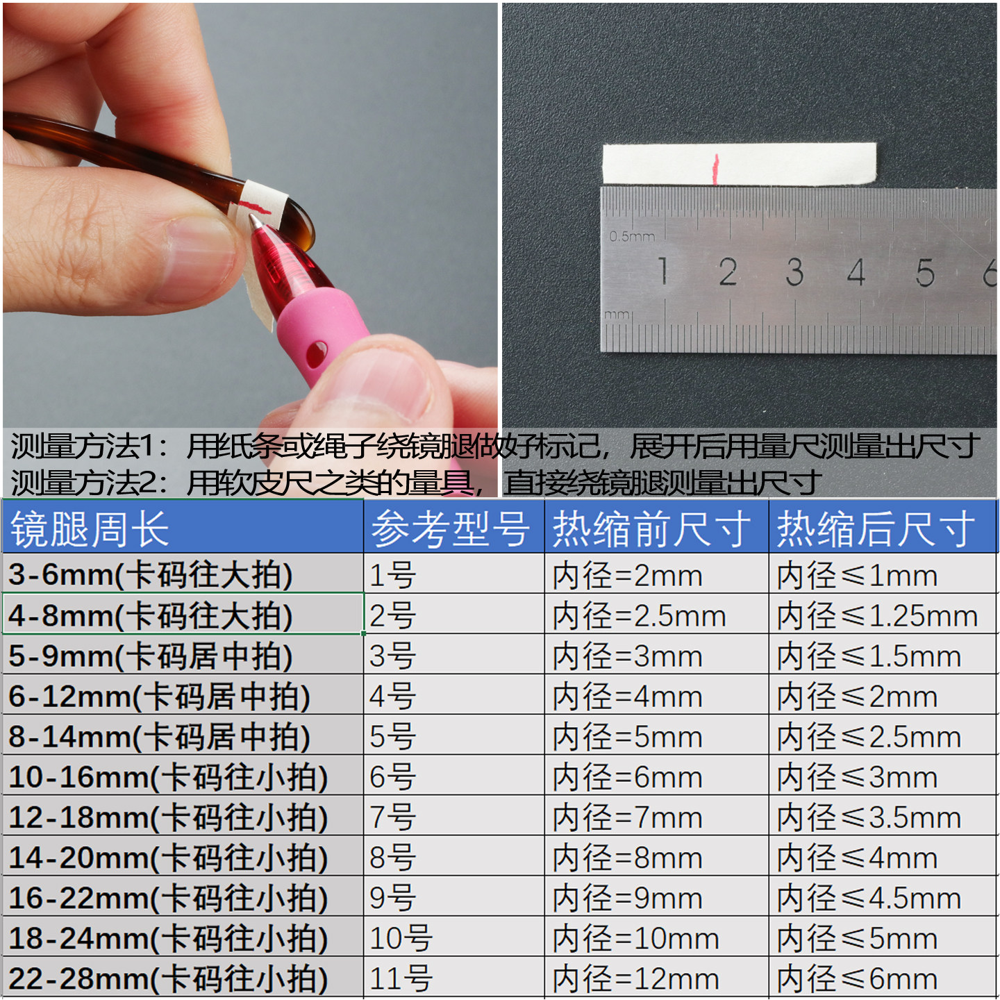眼镜腿套热缩保护管防过敏膜防滑镜腿硅胶套防磨耳朵脚套金属眼睛