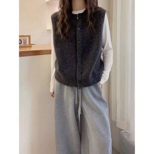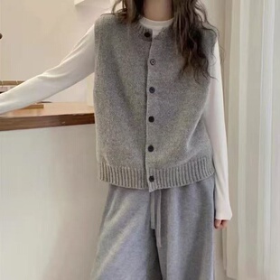 灰色圆领毛衣马甲女开衫 羊毛百搭叠穿坎肩针织背心上衣 秋冬新款
