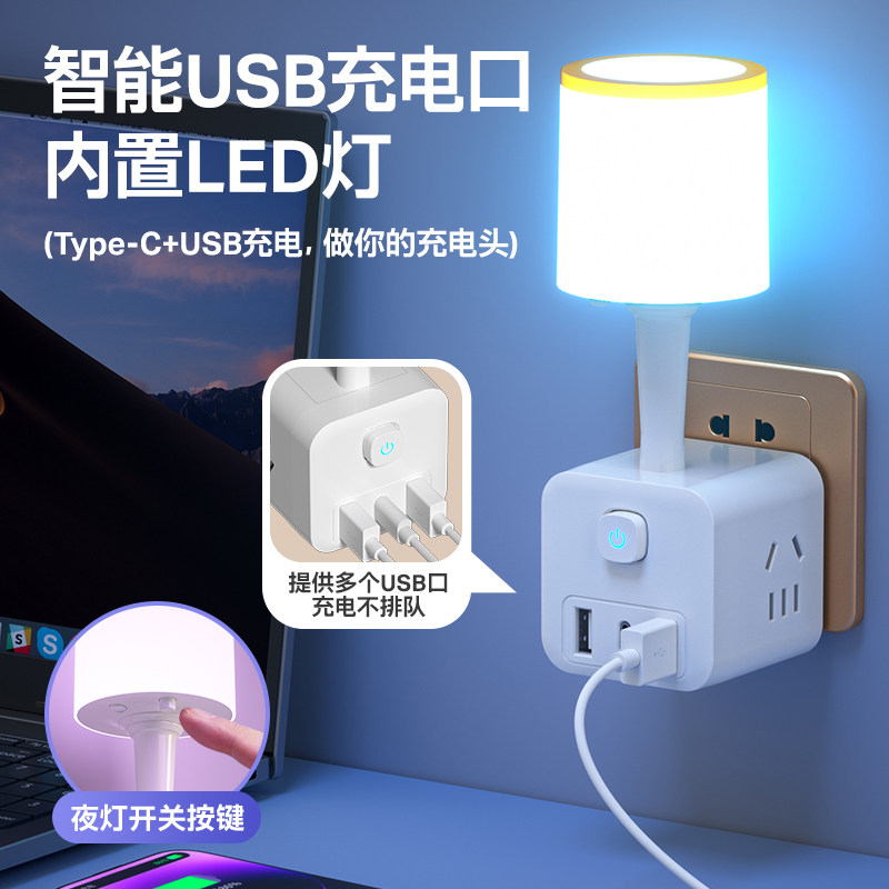 人工智能语音台灯控制灯USB声控灯感应灯led插口小夜灯一体床头灯
