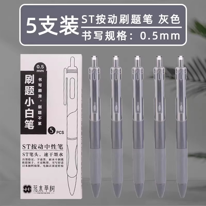 日系高颜值小白笔刷题笔速干顺滑ins按动笔0.5mmST头黑笔学生专用
