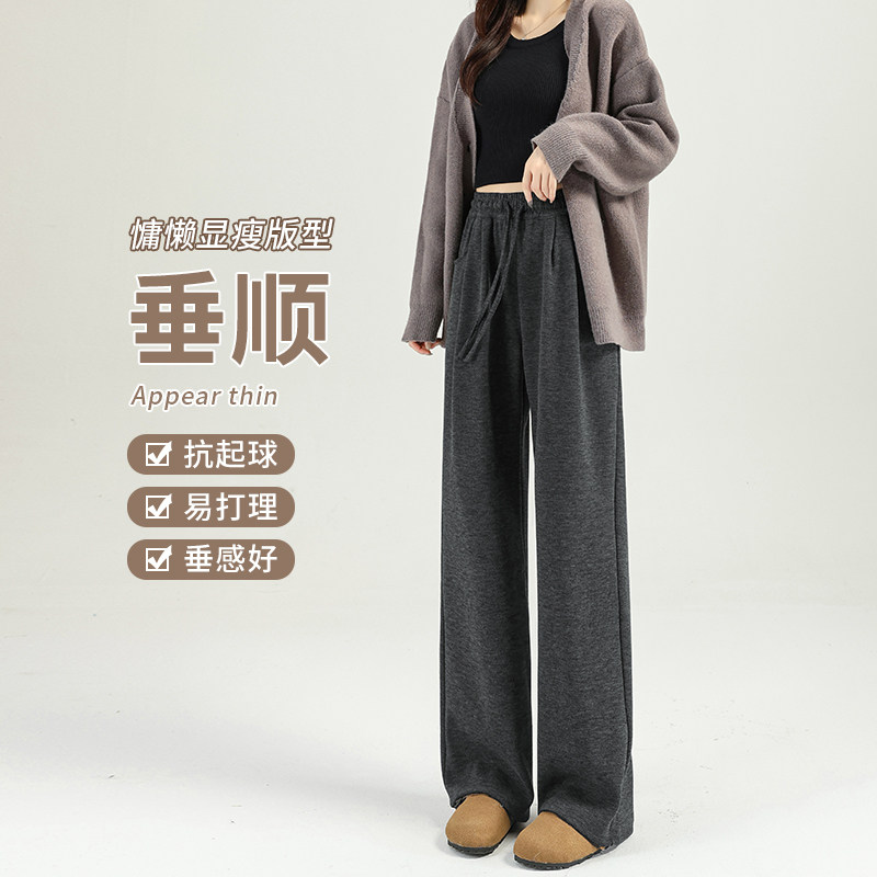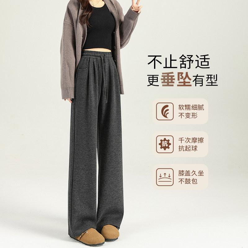 子 秋冬小个子垂坠感软糯灰色高腰宽松阔腿裤 加绒糯米裤 女2025新款