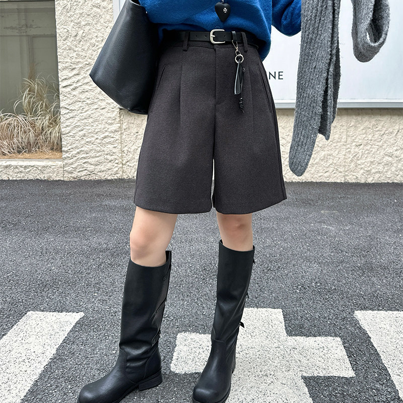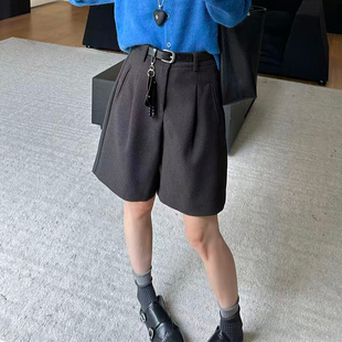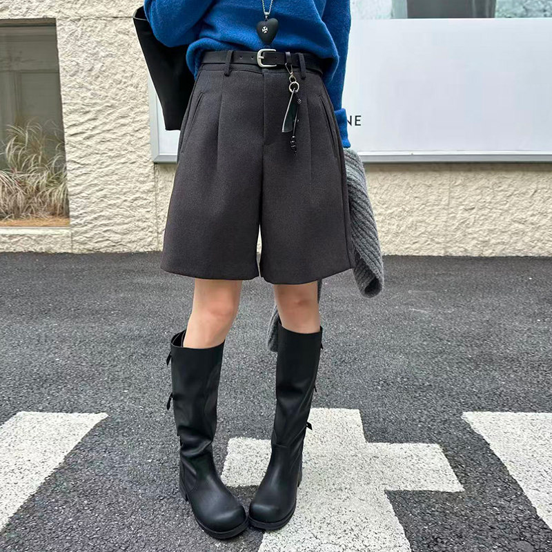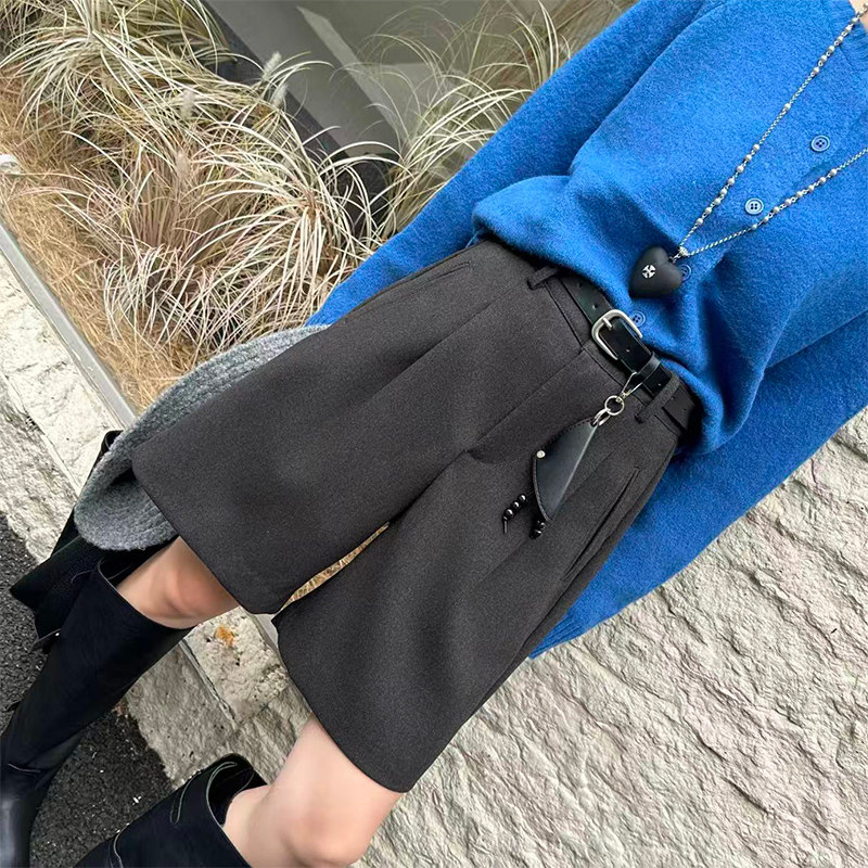 五分裤 灰色中裤 2025新款 高级毛呢休闲宽松靴裤 冬天女士短裤 西装