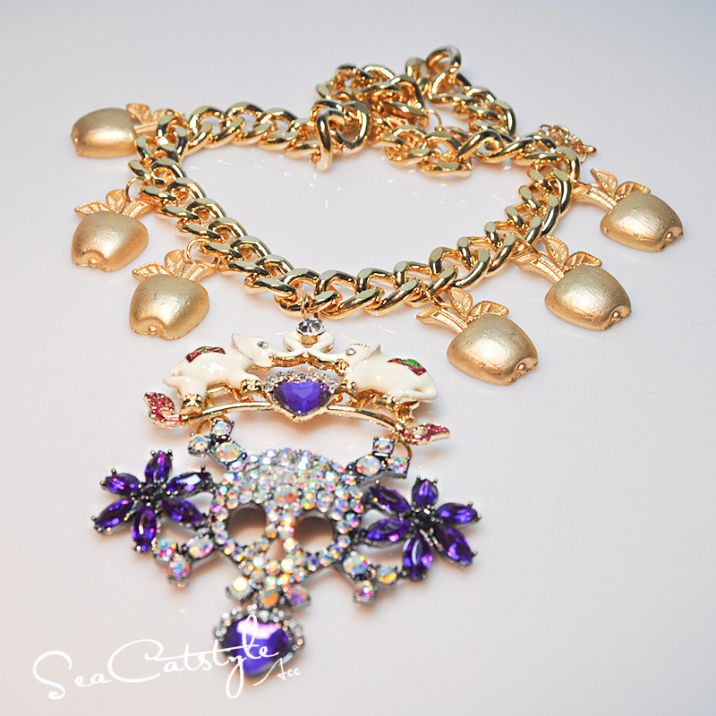 复古做旧骷髅头吊坠可爱甜美苹果多元 个性 素小象轻奢项链 时尚 韩版