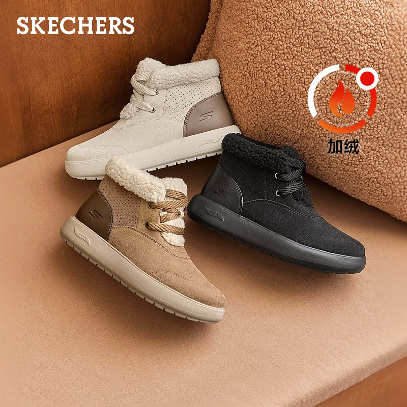 冬靴毛毛靴 棉靴短靴休闲鞋 斯凯奇2025冬新款 女雪地靴加绒保暖棉鞋
