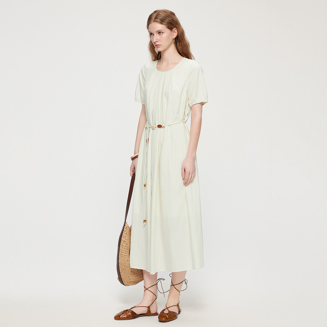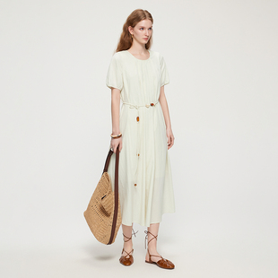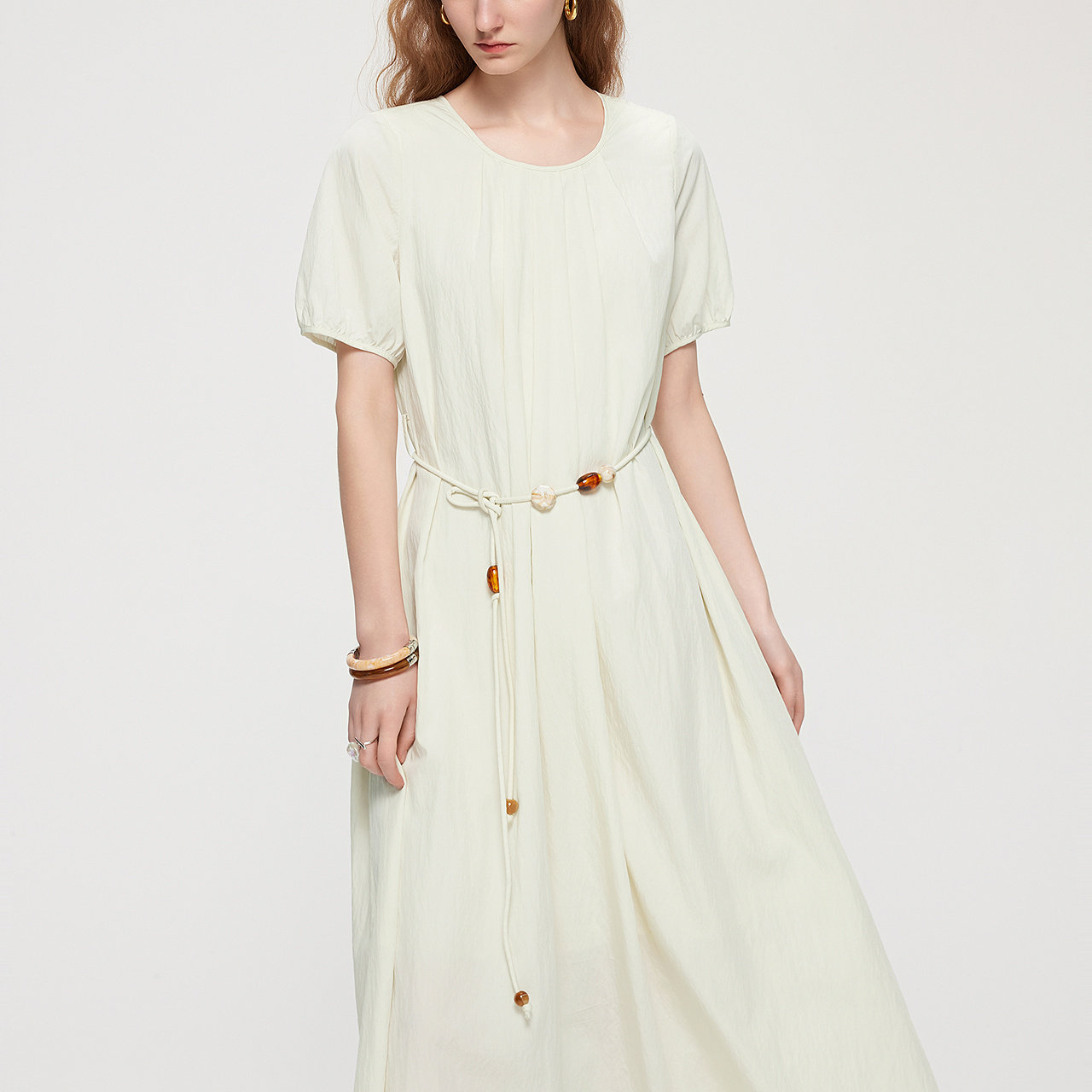 A字收腰连衣裙女 短款 摩萨克2025夏新款 珠饰波西米亚风宽松短袖