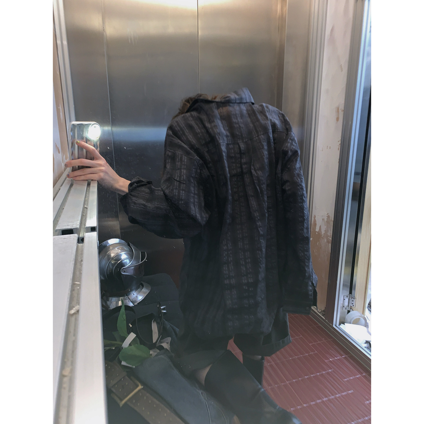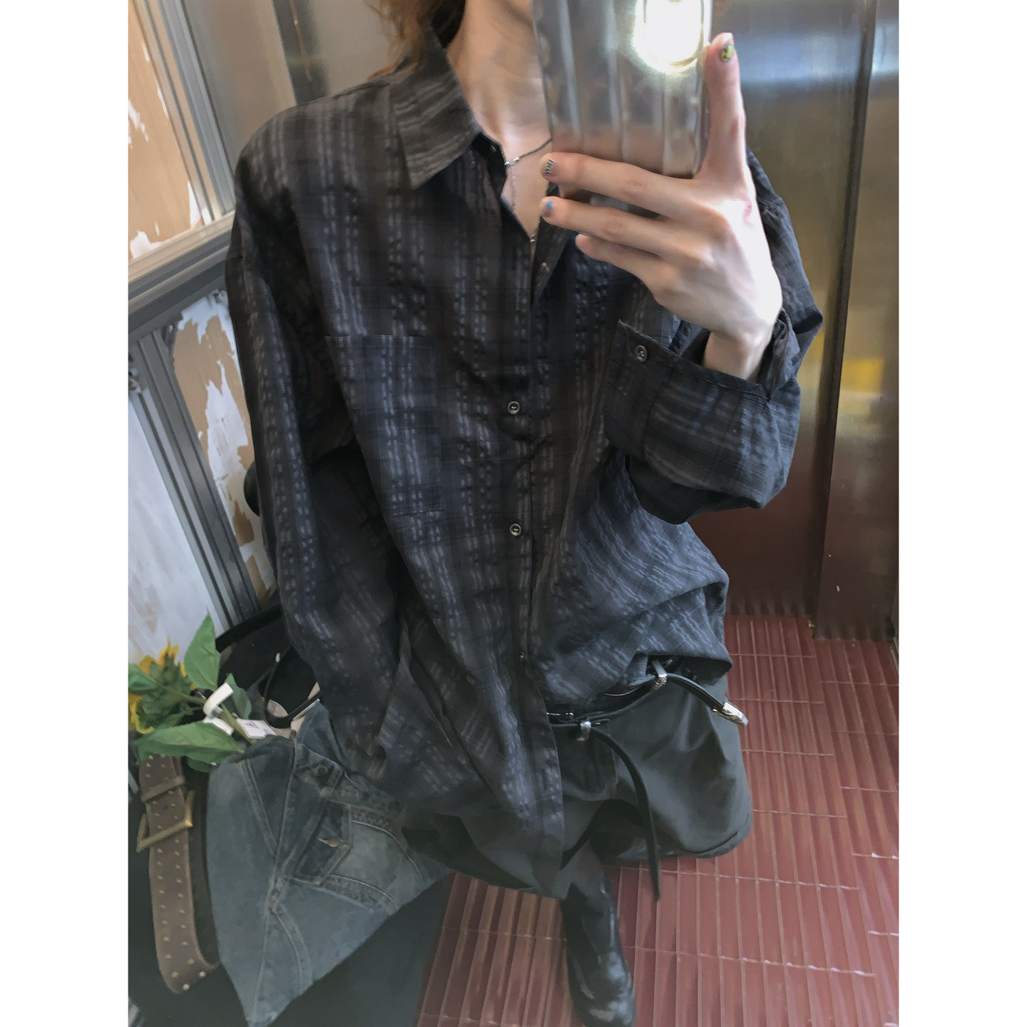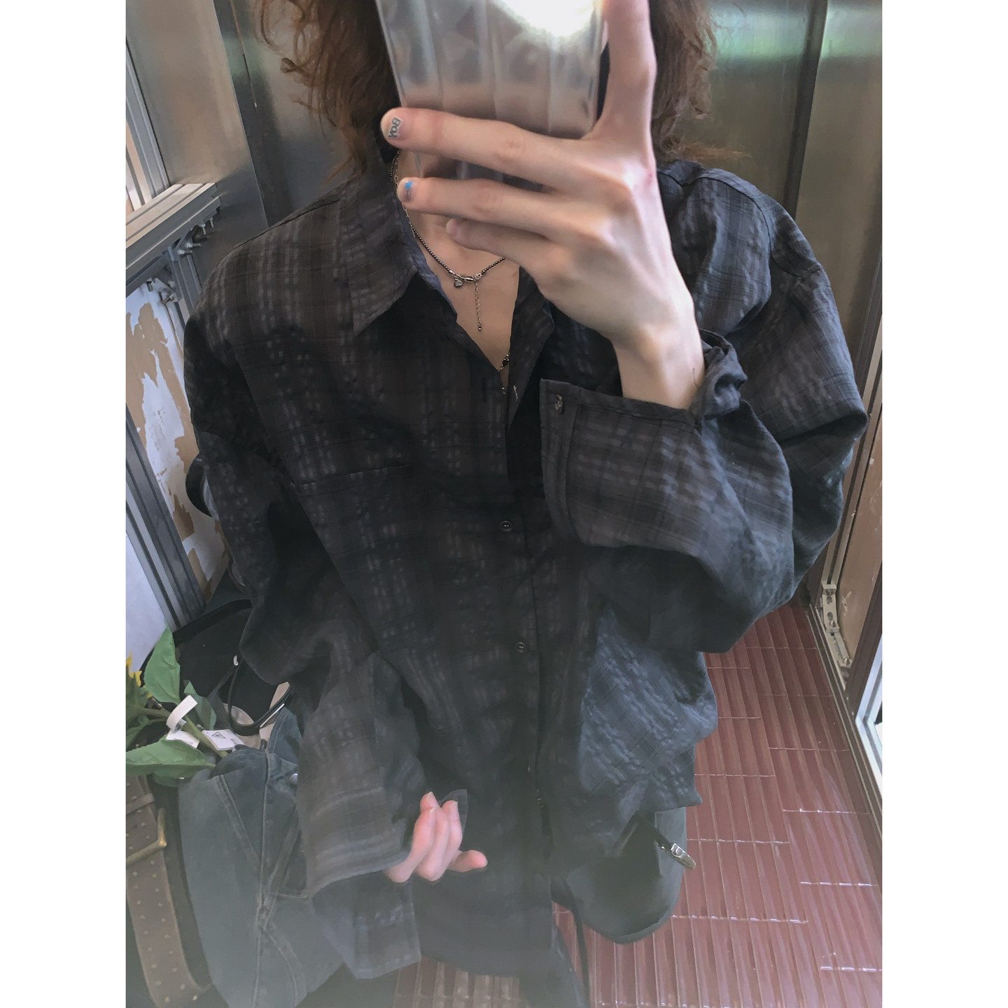 衬衫 做旧格纹浮粒纹理感宽松外套休闲男复古长袖 美式 阿荒与阿卤