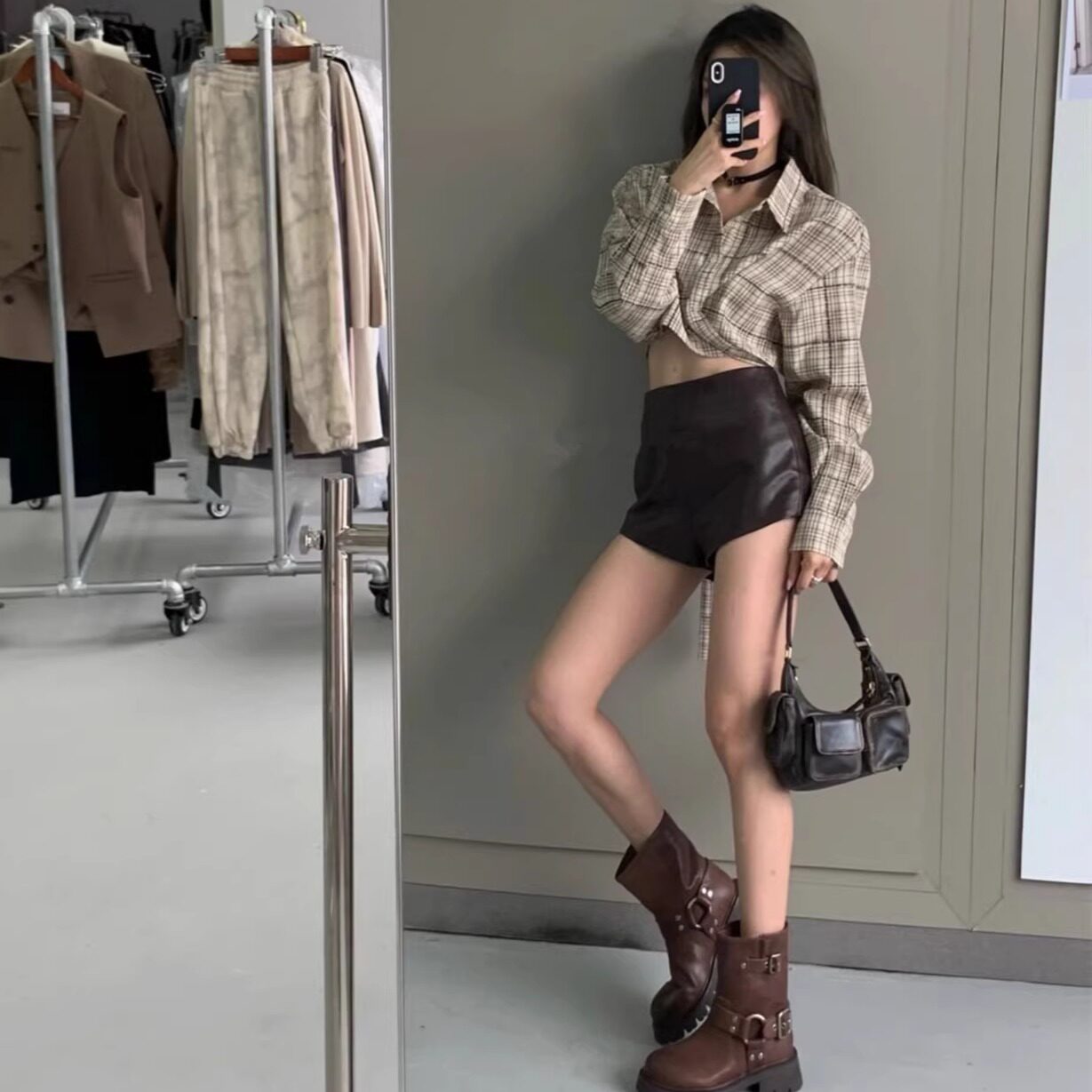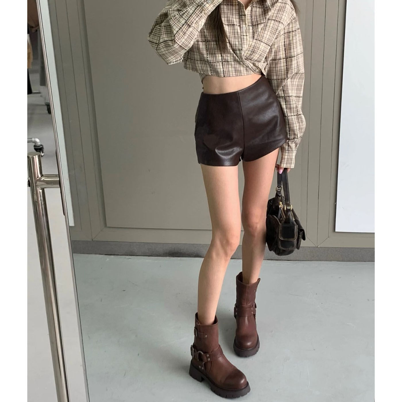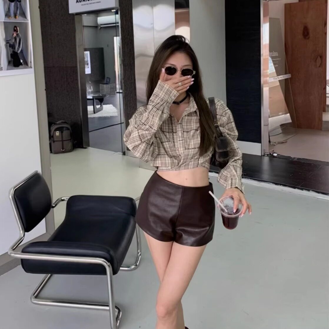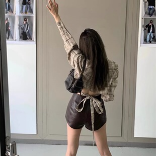 a字高腰显瘦小个子紧身皮短裤 皮裤 外穿辣妹2026秋冬新款 女款 短裤