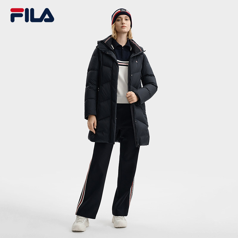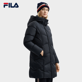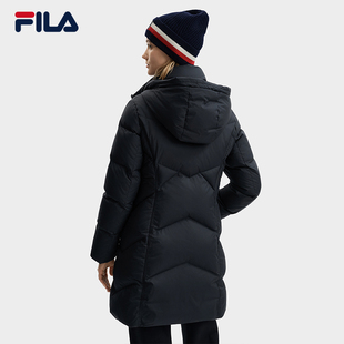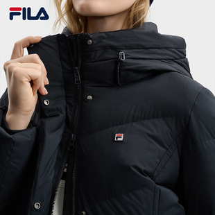 运动连帽保暖外套 新品 鹅绒FILA斐乐官方女子中长款 羽绒服2025冬季