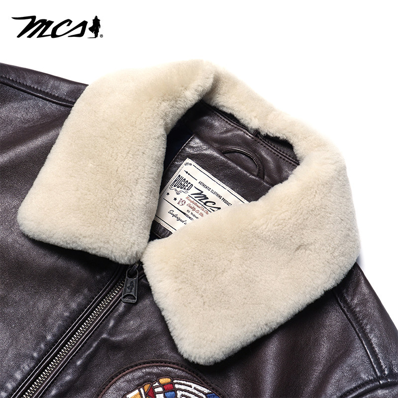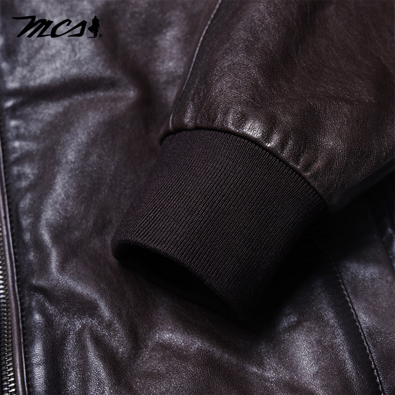MCS男装 户外休闲保暖毛领羊皮真皮皮衣外套男 源自万宝路秋冬新款