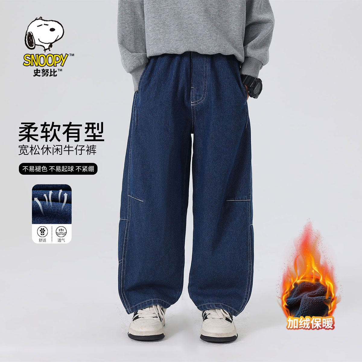 子学生冬裤 儿童男装 一体绒加绒保暖裤 男童牛仔裤 厚绒弹力 2025新款