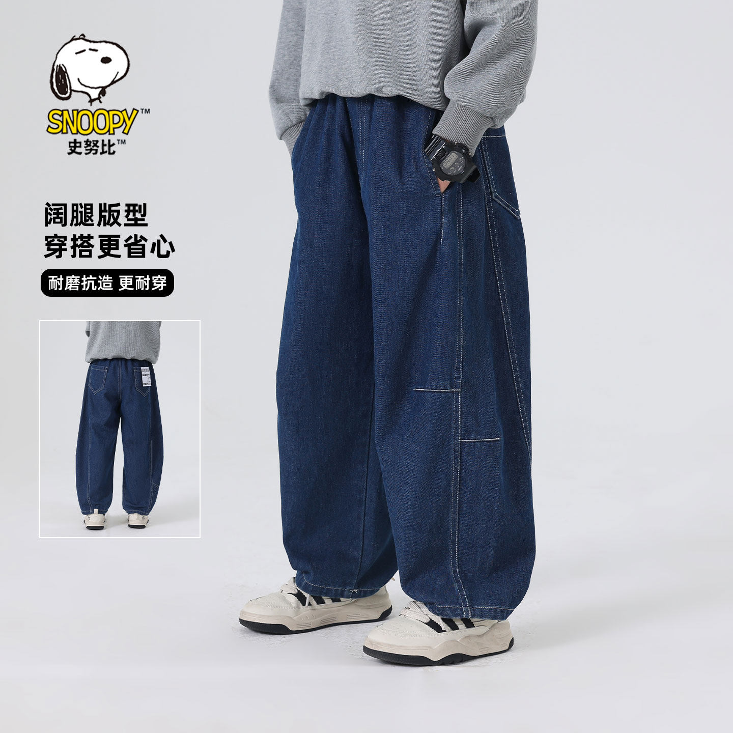 宝儿休闲百搭宽松长裤 新款 子潮 2026春季 大耳象女童直筒口袋牛仔裤