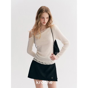 针织衫 王楚然同款 假两件蕾丝拼接斜肩长袖 羊毛混纺 Kroche