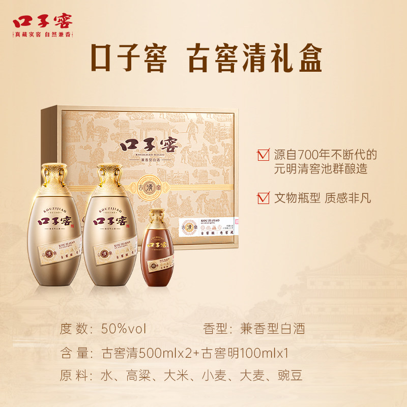 口子窖古窖清礼盒50度500ml 100ml安徽白酒节日送礼 2瓶