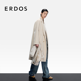 贝源M家明星同款 羊毛毛呢外套女 水波纹双面羊绒大衣女焦糖色长款