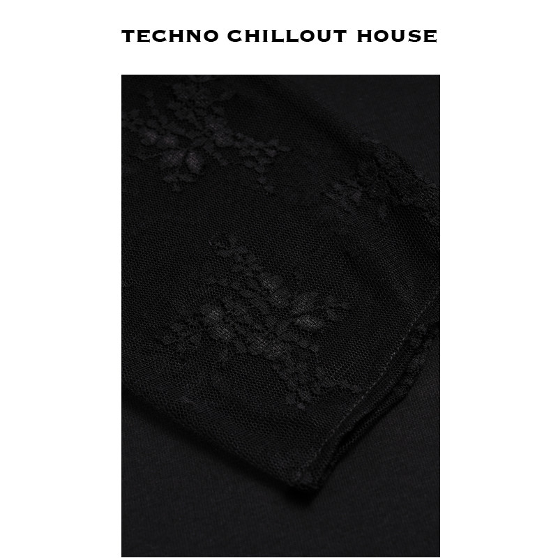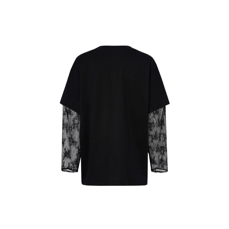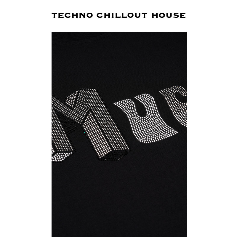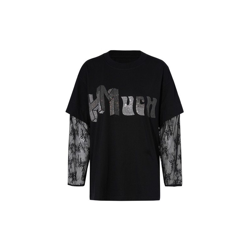 TCH轻奢烫钻工艺时尚 百搭黑色字母蕾丝T恤女T75A08E1005私服tch