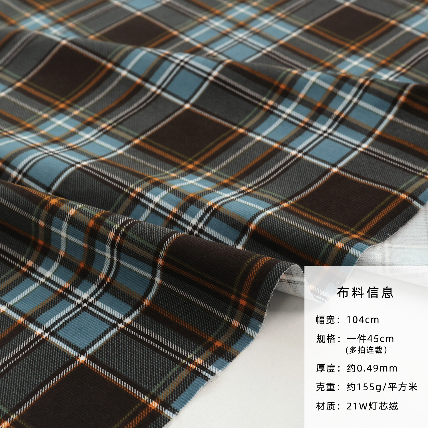 日本cosmo进口21W灯芯绒面料柔软舒适手工连衣裙外套布料复古格纹