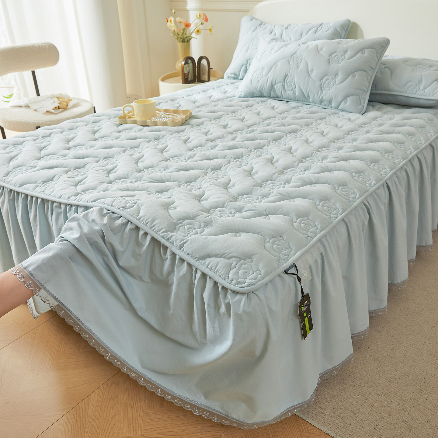 全棉床裙夹棉床笠单件纯棉床盖防尘床单床垫防滑三件套四季 通用