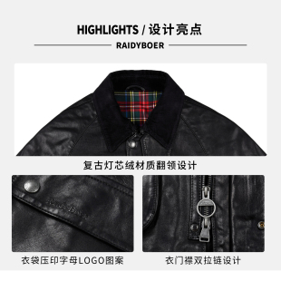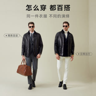 翻领复古中长款 新款 油蜡羊皮革外套 真皮皮衣2025秋季 雷迪波尔男装