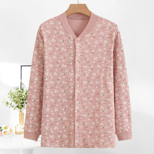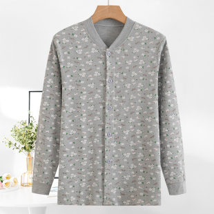 中老年女纯棉开衫 秋衣老人全棉线衣家居服妈妈打底秋冬宽松棉毛衫