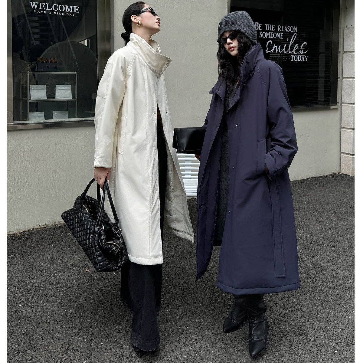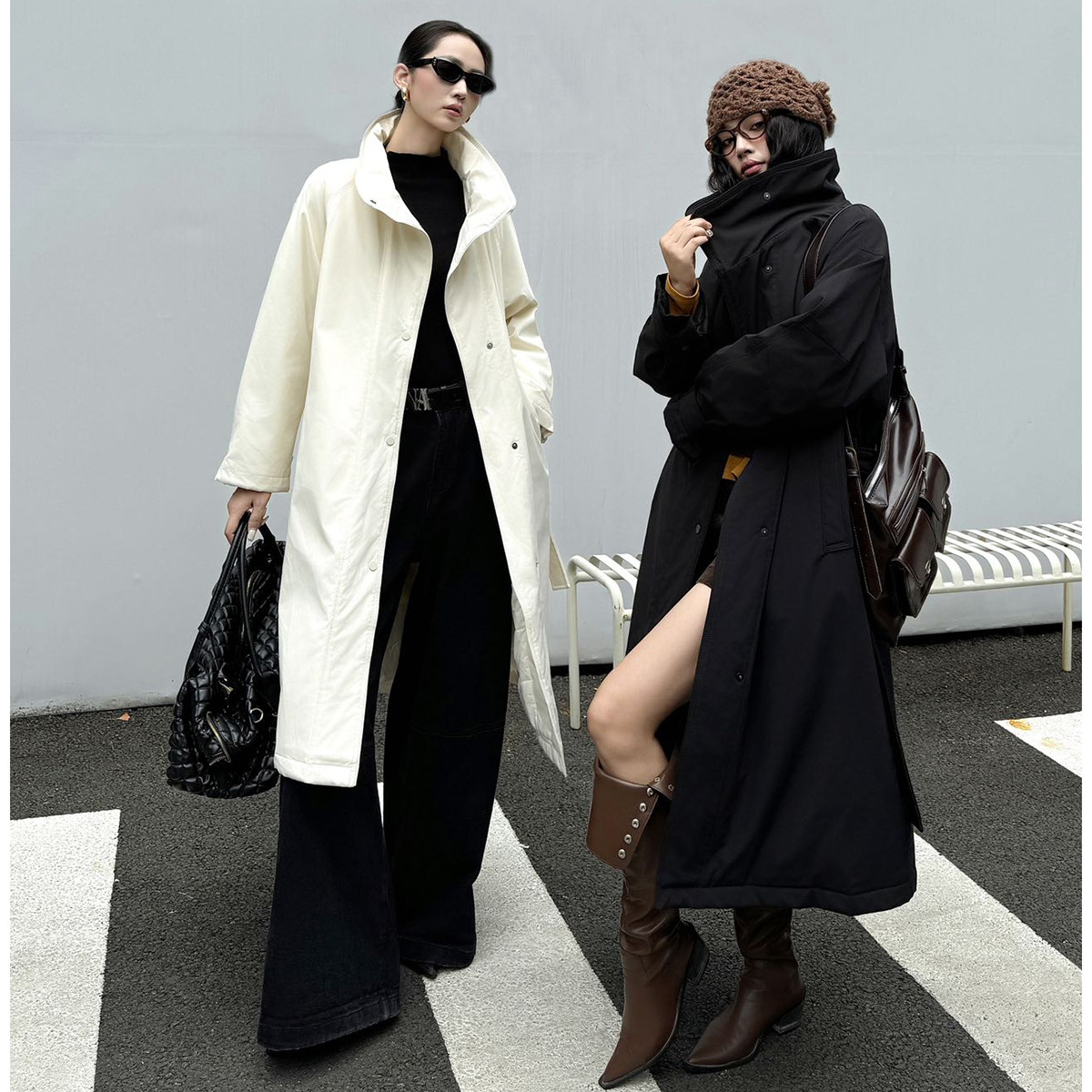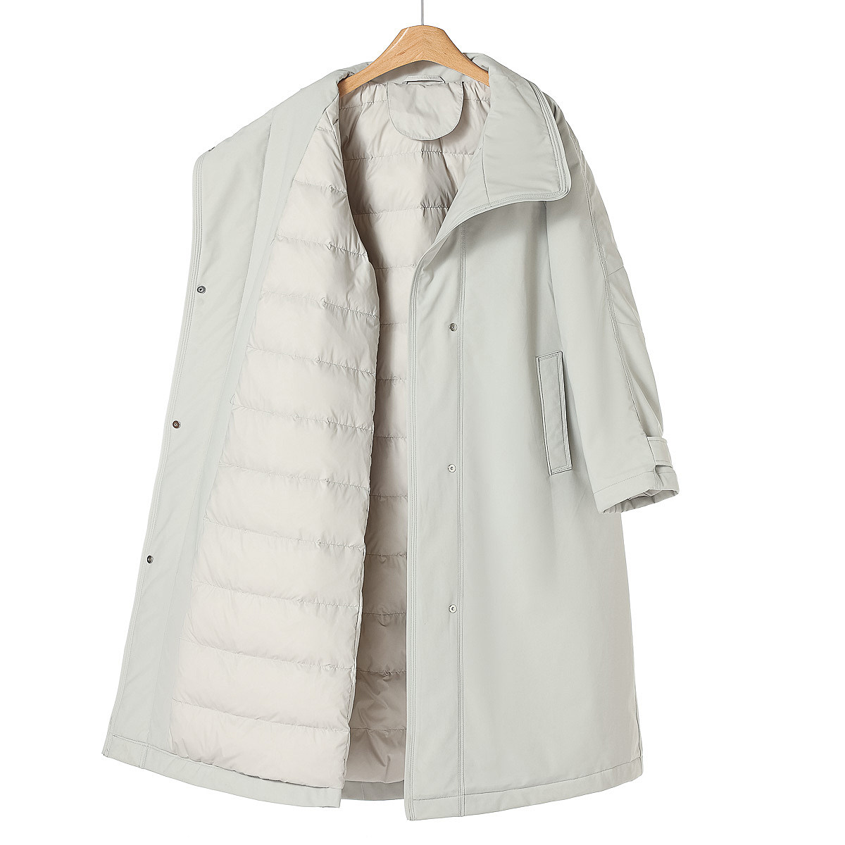 摁扣系腰带机场风立领羽绒服323 芊冬装 新设计风衣式 申
