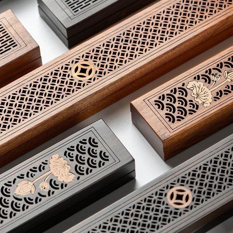 黑檀木酸枝木卧香盒香炉家用室内香薰木质檀香炉沉香线 线香底座