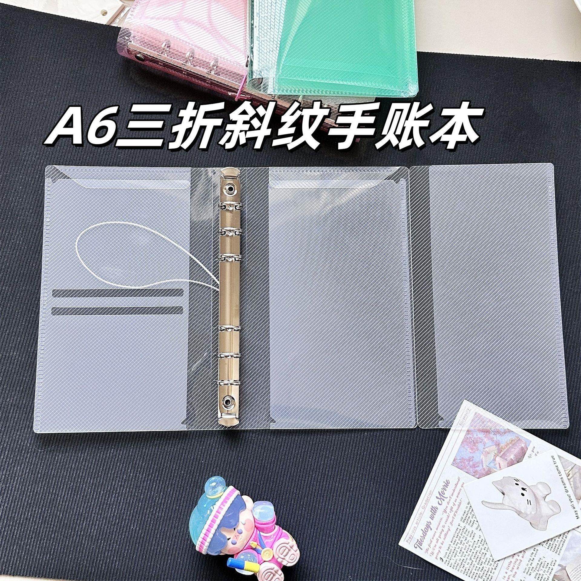 彩色A6活页壳三折款 手账收纳册斜纹pp材质粉色收纳本笔记本收纳本