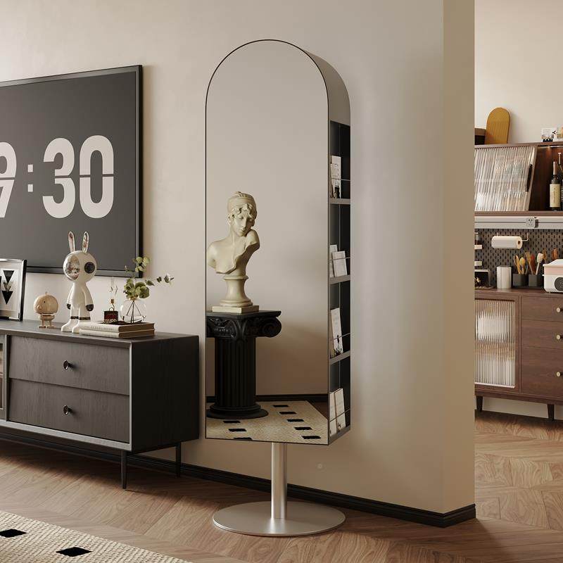 卧室试全衣镜子?转穿衣旋镜身镜落地书架轻奢杂志NUU架镜收纳置物