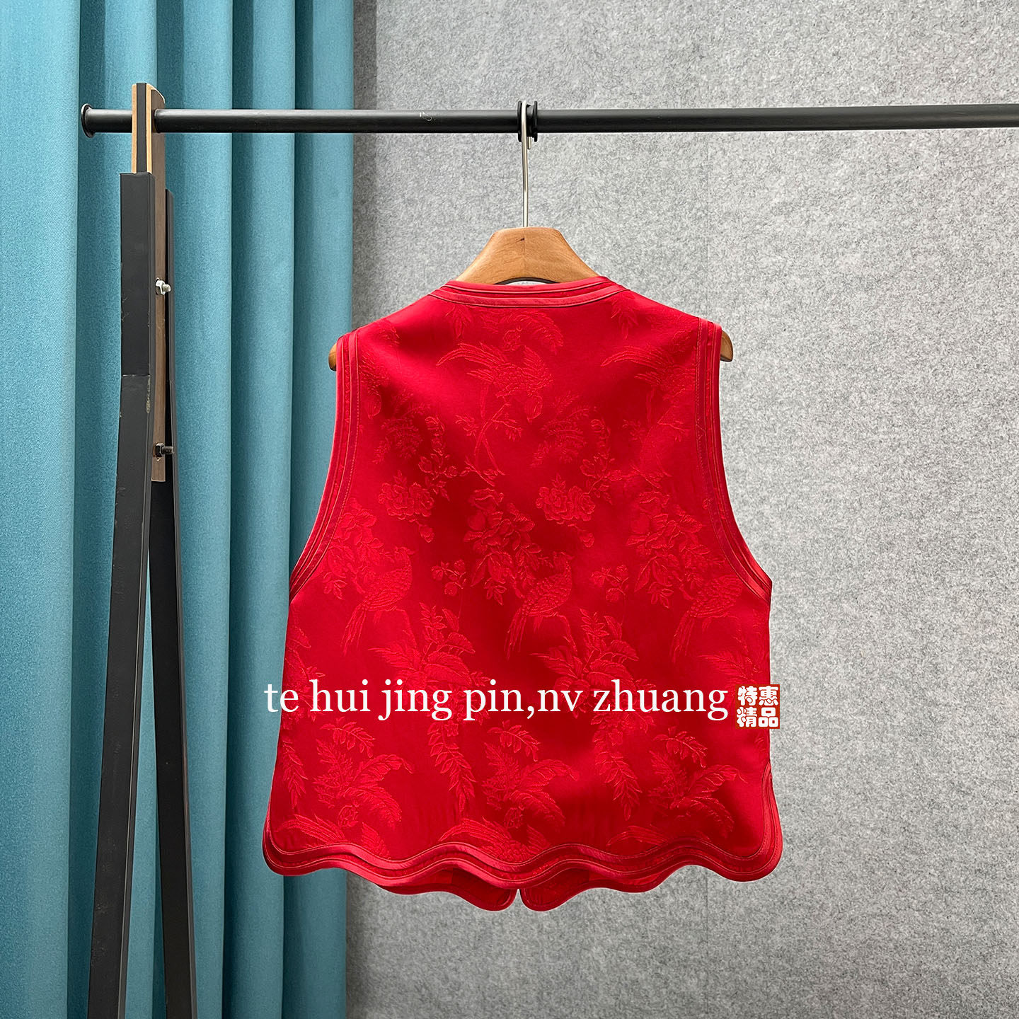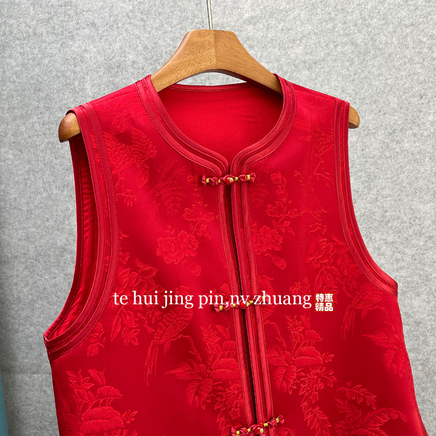 新中式 国风高级感红色提花马甲女盘扣圆领国风背心外穿洋气新年服